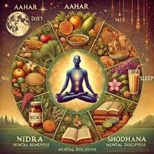 2. Circadian Alignment: Custom daily rituals (Dinacharya), lifestyle adjustments, and sleep science protocols to stabilize your nervous system and restore vitality.